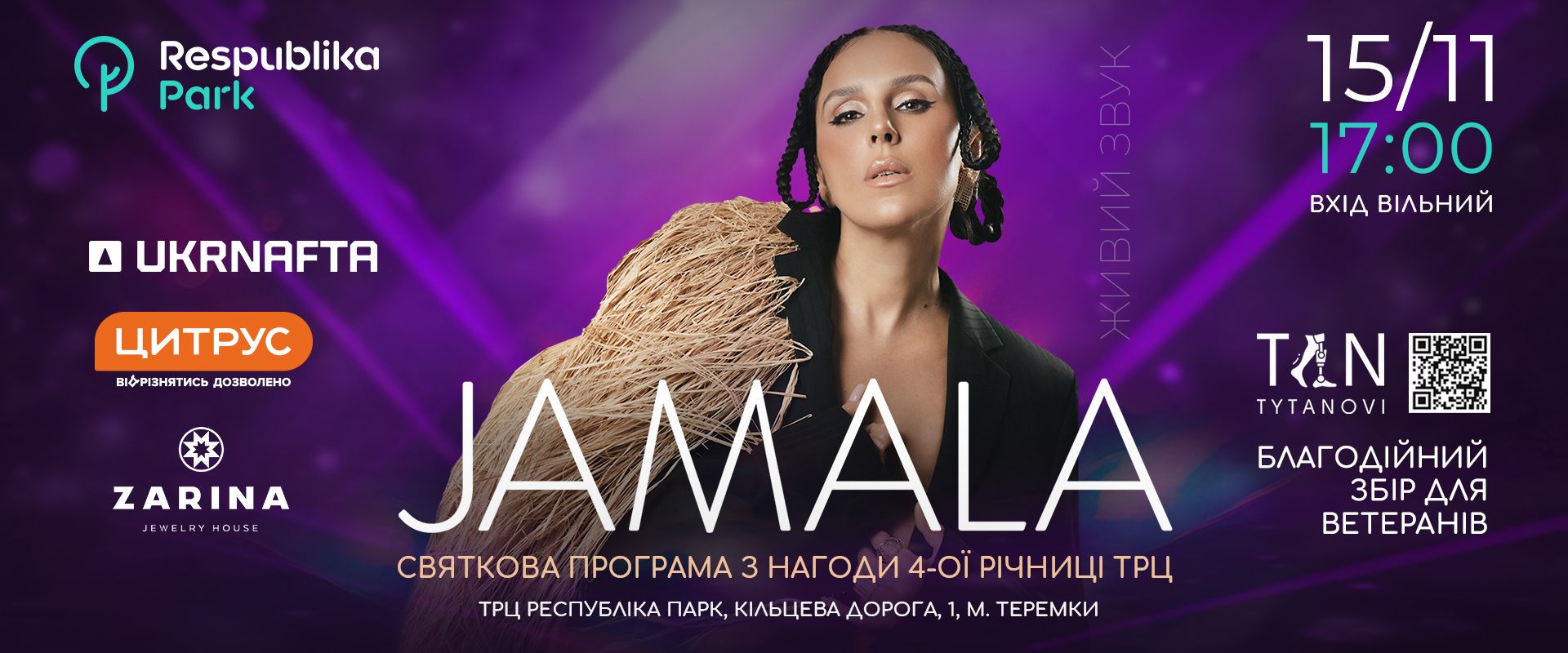 Друзі, запрошуємо вас 15 листопада на незабутній концерт JAMALA — української співачки, авторки пісень і переможниці Євробачення-2016 в ТРЦ Respublika Park!