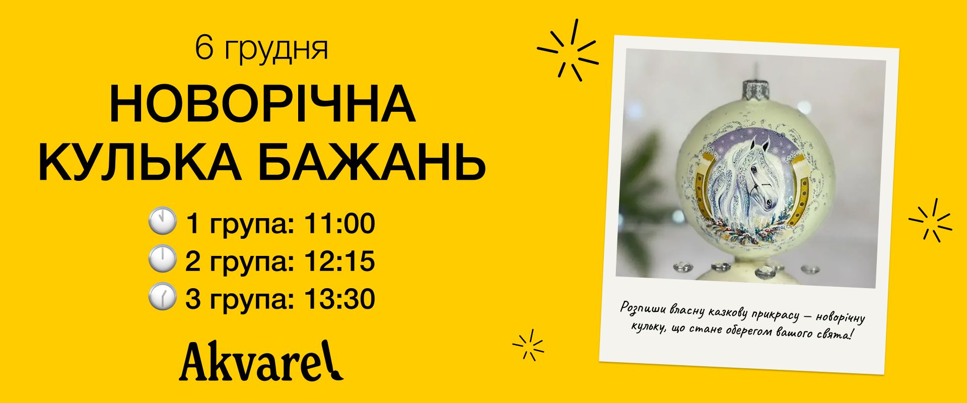 Дітки від 6 років зможуть розписати власну казкову прикрасу — новорічну кульку, що стане оберегом вашого свята!