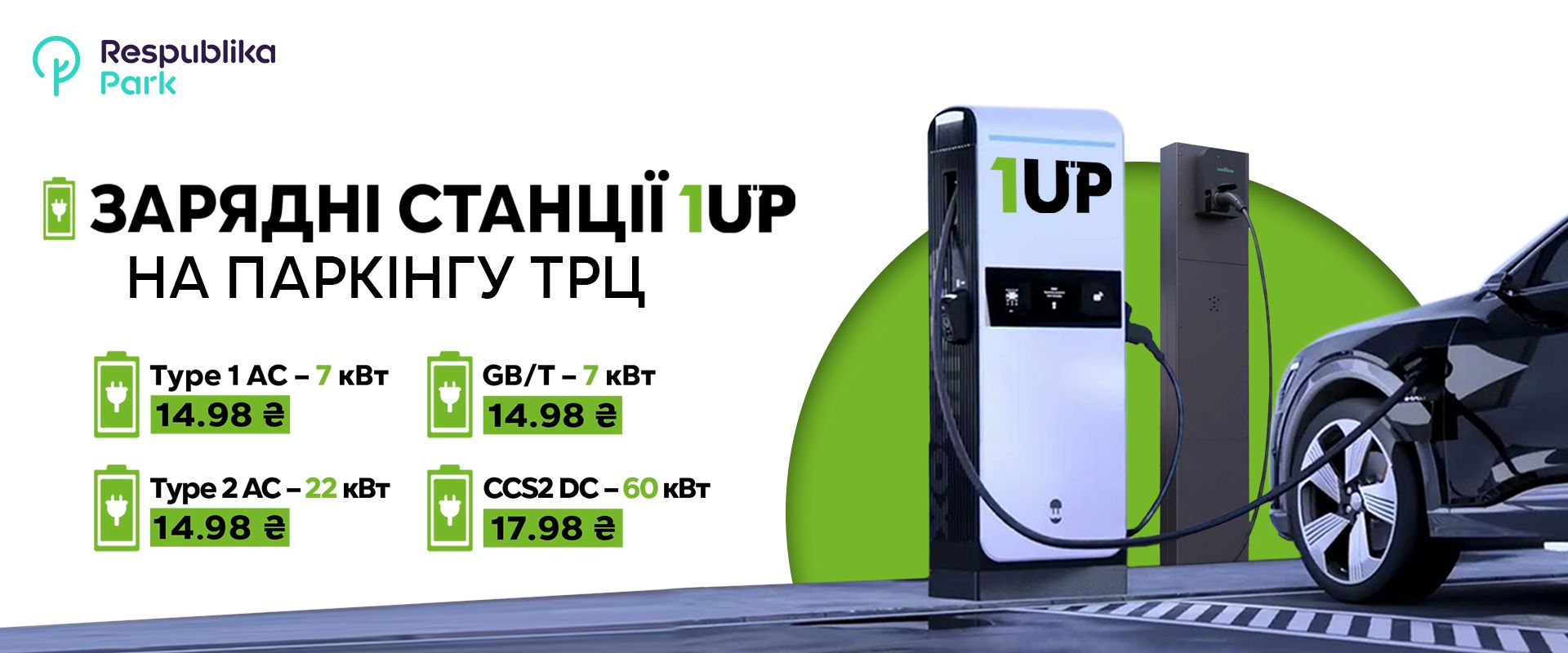 Ультрасучасні зарядні станції 1UР на паркінгу ТРЦ Respublika Park вже працюють для Вас!